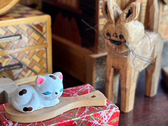 各地の土人形や張子、木地玩具など、猫を題材にした郷土玩具も積極的に探しております。古いものはもちろん、箱付き・由来のわかるものは特に大切に査定いたします。