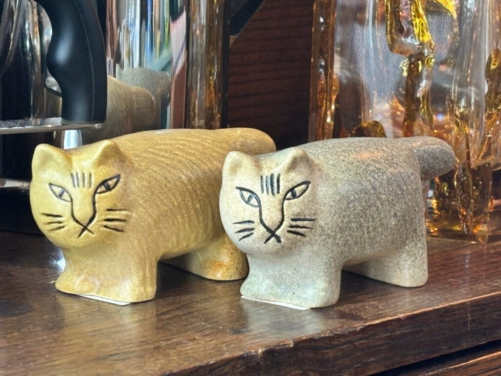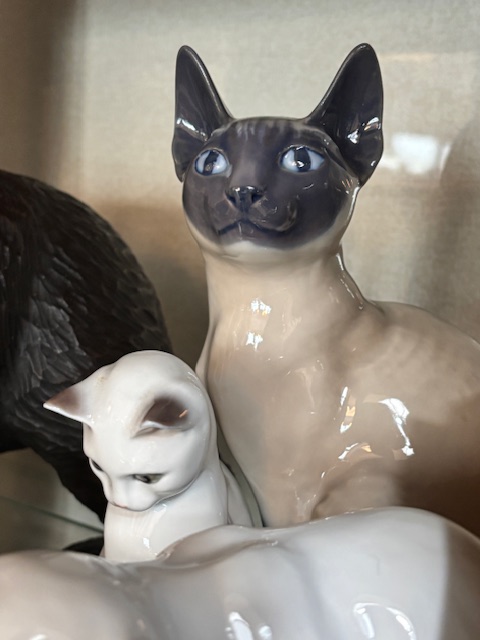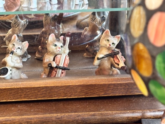猫がお好きで集めてこられたお品、長年ご自宅を見守ってきた猫の置物。