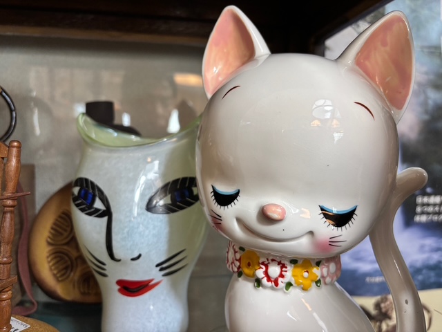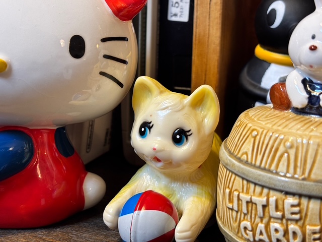 昭和30〜50年代頃の猫の貯金箱、ソフビ人形、企業ノベルティ、内藤ルネ調の可愛らしいグッズなど、当時ならではのデザインは今も人気が高まっております。